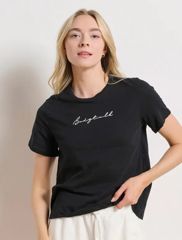 Γυναικείο κοντομάνικο t-shirt •Με στρογγυλή λαιμόκοψη •Κατασκευασμένo από βαμβάκι flamma για απαλή και ανάλαφρη αίσθηση •Διακοσμείται με print •Kανονική εφαρμογή •Σύνθεση 100% βαμβάκι flamma •Το μοντέλο φοράει μέγεθος S